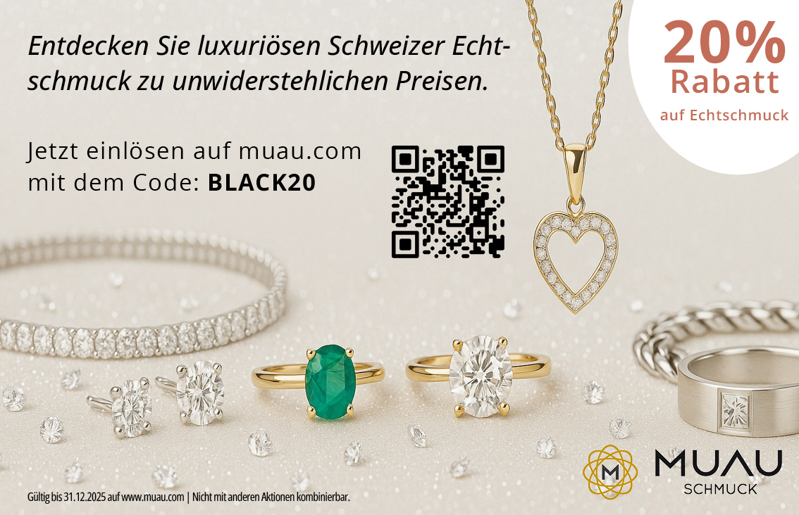 MUAU Schmuck ist der Schweizer Online-Juwelier mit über 80’000 hochwertigen Schmuckstücken. Als Swiss Brand stehen wir für Präzision, Design und Eleganz. Neben klassischem Echtschmuck bieten wir auch massgefertigte und personalisierbare Schmuckstücke, sicheren Versand und Käuferschutz. Ideal für alle, die Schweizer Qualität und exklusive Designs schätzen.