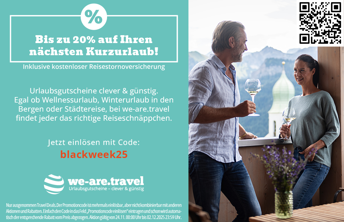 Urlaubsgutscheine clever & günstig. Egal ob Wellnessurlaub, Winterurlaub in den Bergen oder Städtereise, bei we-are.travel findet jeder das richtige Reiseschnäppchen.