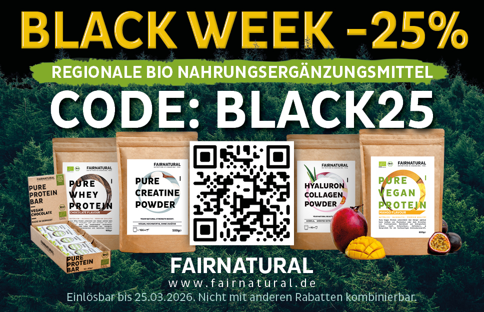 Fairnatural Startdatum13.11.2025 Ablaufdatum25.03.2026 BLACK WEEK -25% RABATT | REGIONALE BIO NAHRUNGSERGÄNZUNGSMITTEL Code BLACK25 Couponcode kopieren Coupon einlösen Coupon drucken! Endet in