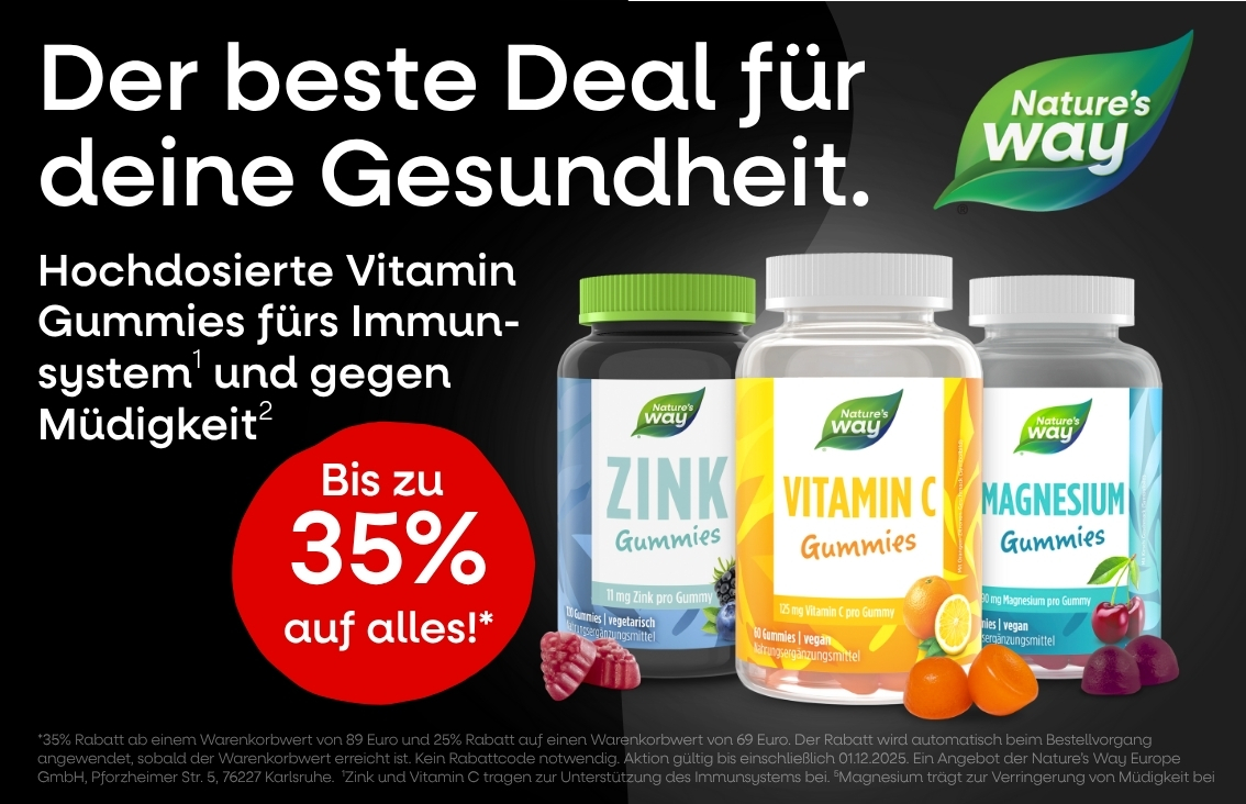 Der beste Deal für deine Gesundheit. Nature's Way Bis zu 35% auf alles!* Hochdosierte Vitamin Gummies fürs Immun-system' und gegen Müdigkeit