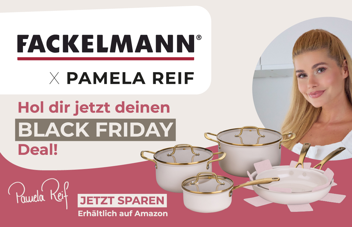 FACKELMANN Startdatum07.11.2025 Ablaufdatum31.12.2025 FACKELMANN X PAMELA REIF Hol dir jetzt deinen BLACK FRIDAY Deal! #top Kein Code notwendig Zum Angebot Coupon drucken! Endet in