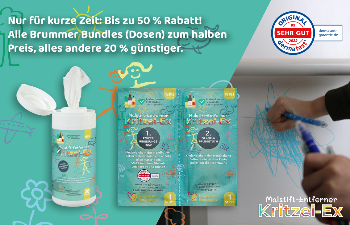 Mit Kritzel-Ex entfernst Du schnell und sicher Farbreste wie Wachsmalstifte, Permanentmarker oder Nagellack, ohne empfindliche Oberflächen in Deinem Zuhause zu beschädigen. Auch für kleine Graffiti an Briefkästen ist es ideal geeignet. Probiere es aus und überzeuge Dich selbst.