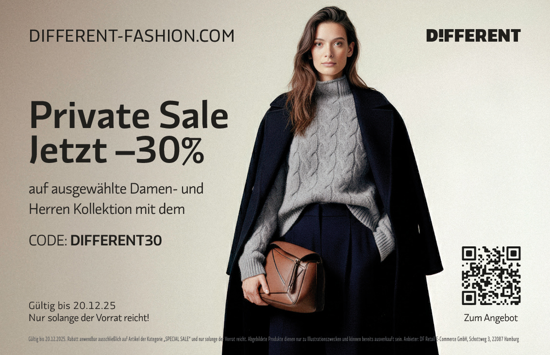 DF Retail E-Commerce GmbH Startdatum20.11.2025 Ablaufdatum20.12.2025 Private Sale letzt -30% auf ausgewählte Damen- und Herren Kollektion | Nur solange der Vorrat reicht! Code DIFFERENT30 Couponcode kopieren Coupon einlösen Coupon drucken! Endet in