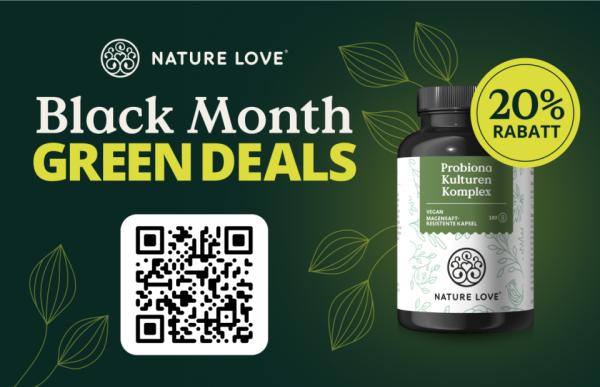 Black Month GREEN DEALS | Spare 20% auf naturverliebte Nahrungsergänzung von Nature Love. Mehr Details Endet in