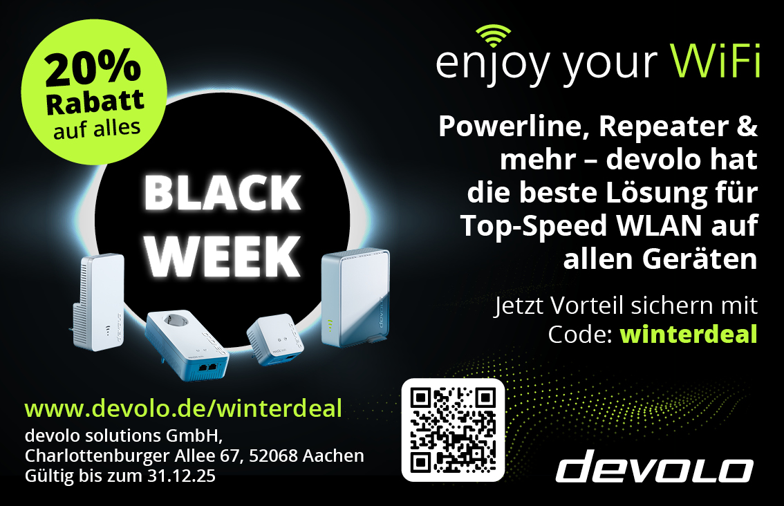 devolo Startdatum19.11.2025 Ablaufdatum31.12.2025 20% Rabatt auf alles | Powerline, Repeater & mehr - devolo hat die beste Lösung für Top-Speed WLAN auf allen Geräten Code winterdeal Couponcode kopieren Coupon einlösen Coupon drucken! Endet in