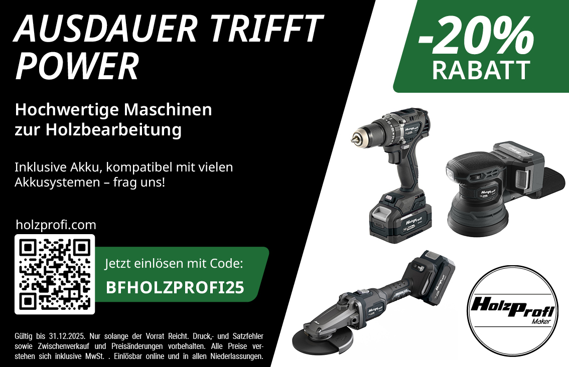 Hochwertige Maschinen zur Holzbearbeitung. Inklusive Akku, kompatibel mit vielen Akkusystemen – frag uns!