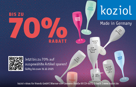 koziol Startdatum07.11.2025 Ablaufdatum31.12.2025 BIS ZU 70% BLACK FRIDAY RABATT bei koziol Kein Code notwendig Zum Angebot Coupon drucken! Endet in