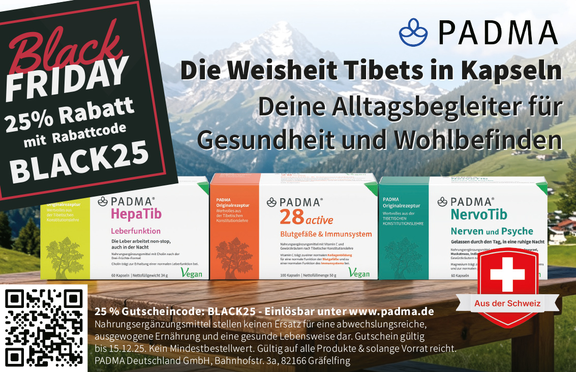 PADMA AG Startdatum26.11.2025 Ablaufdatum15.12.2025 Black FRIDAY 25% Rabatt | Die Weisheit Tibets in Kapseln Deine Alltagsbegleiter für Gesundheit und Wohlbefinden Code BLACK25 Couponcode kopieren Coupon einlösen Coupon drucken! Endet in