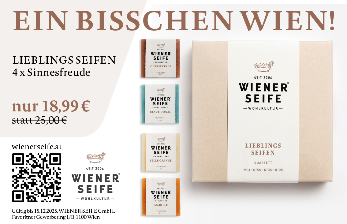 EIN BISSCHEN WIEN! LIEBLINGS SEIFEN 4 x Sinnesfreude jetzt zu BLACK FRIDAY sichern! Nur solange der Vorrat reicht!