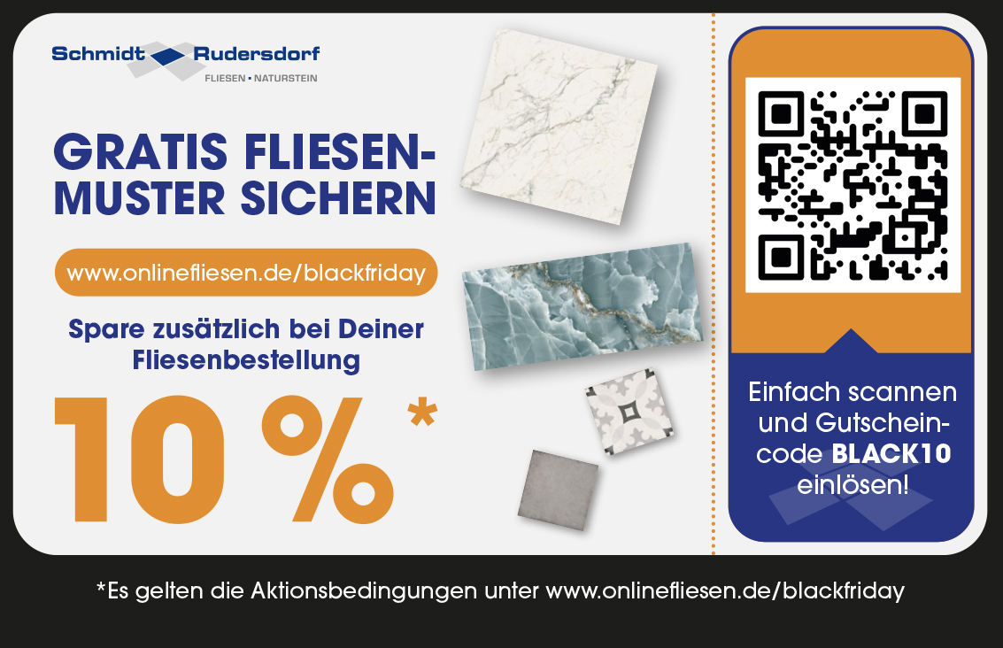 Schmidt-Rudersdorf Startdatum13.11.2025 Ablaufdatum31.12.2025 GRATIS FLIESEN- MUSTER SICHERN! Spare zusätzlich bei Deiner Fliesenbestellung 10%* #hausundgarten Code BLACK10 Couponcode kopieren Coupon einlösen Coupon drucken! Endet in